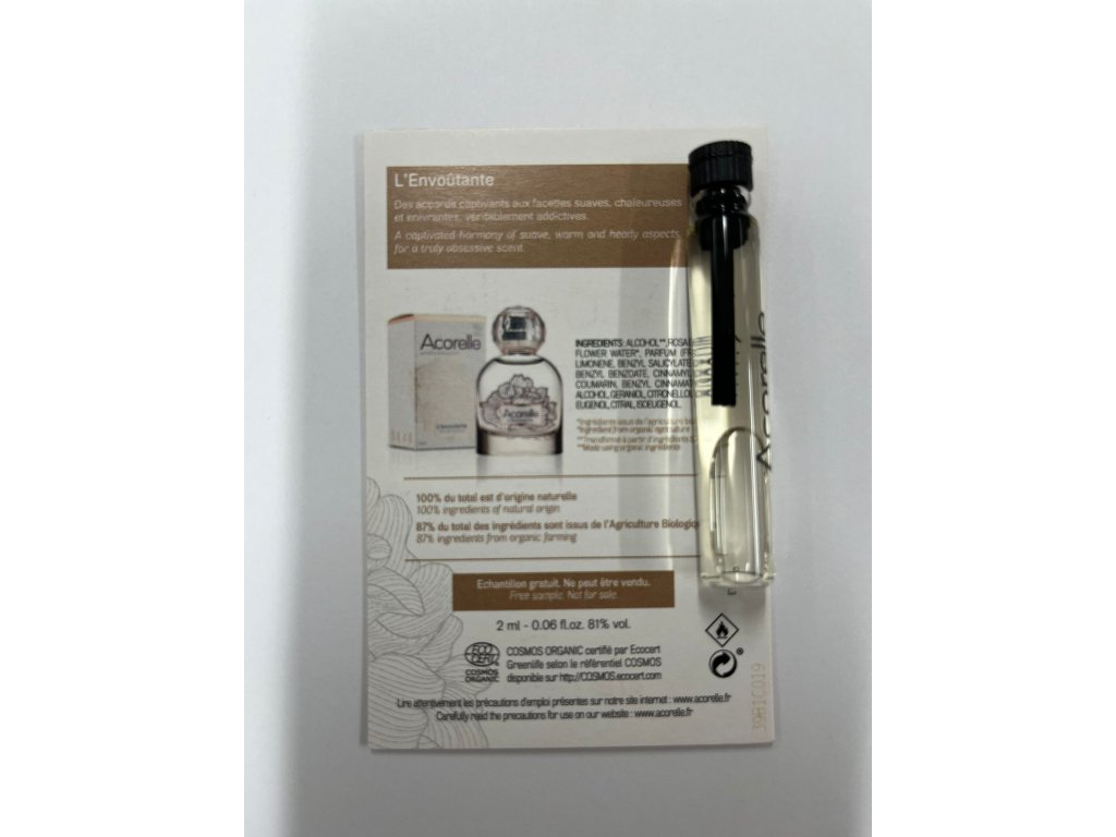 Komplexní a velmi vypracovaná olfaktivní pyradmida posouvá vůni na zcela novou úroveň. Katell Plissonová se stala parfemářkou značky Acorelle a držela se olfaktoterapeutického konceptu této značky. Katell pracovala s éterickými oleji cistu, pačuli a cedru. Kromě toho, že dotváří rovnováhu olfaktivní pyramidy parfému L'ENVOUTANTE, působí tyto éterické oleje pozitivně na emoce, dodávají sebevědomí a podporují smyslnost.
