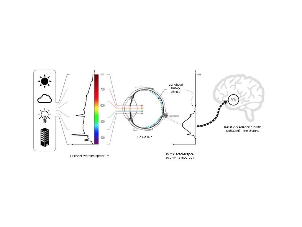 Modré světlo mezi 380 a 470 nm je považováno za škodlivé, protože může způsobit poškození sítnice, šedý zákal a je spojeno s poruchami spánku. Všechna spektra modrého světla však nejsou špatné, například spektrum od 470 do 500 nm, nazývané také tyrkysově modré světlo, je obecně považováno za dobré. Tato škála viditelného modrého světla je prospěšná, protože stimuluje přirozené reflexy chránící oči před přeexponováním a také pomáhá kognitivním a paměťovým funkcím mozku. Zároveň stimuluje fotosenzitivní retinální gangliové buňky, také pupilární reflex a kontroluje cirkadiánní cyklus.