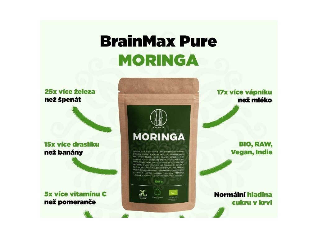 BrainMax Pure Moringa BIO prášek, 100 g (pouze 2ks)