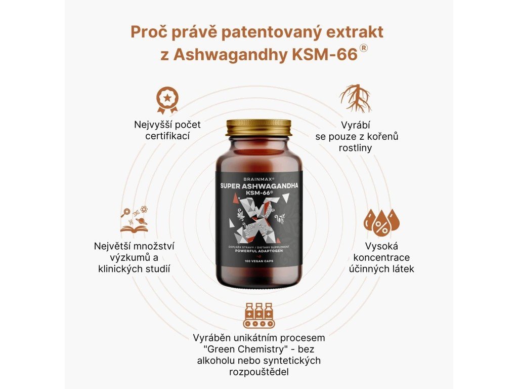 BrainMax Super Ashwagandha KSM-66® - patentovaný extrakt z BIO Ashwagandhy