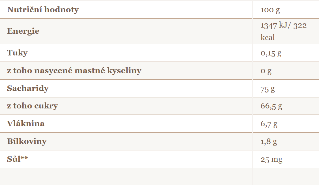 Nutriční hodnoty se mohou u přírodních produktů lišit.