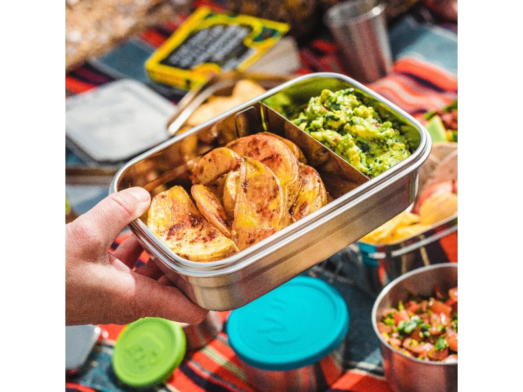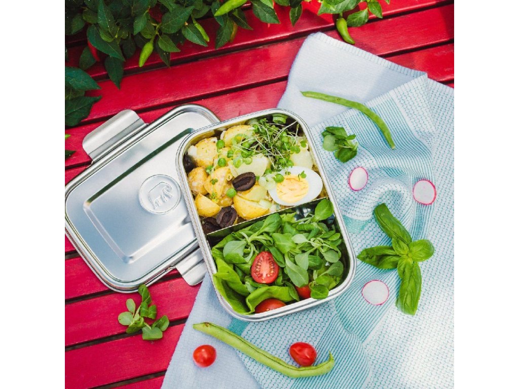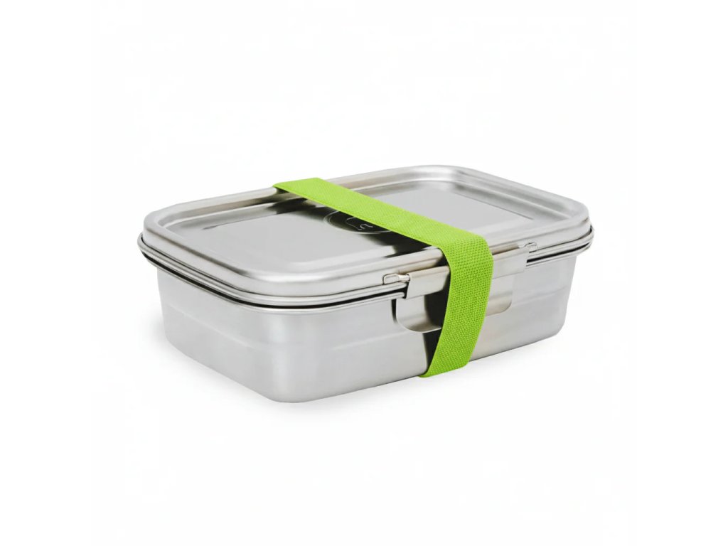 Tato stylová krabička na oběd z broušené oceli neobsahuje žádný plast a umožňuje vám kreativně přistupovat k přípravě oběda. Je nepropustná a má flexibilní přepážku, takže si můžete do oběda zabalit různé druhy jídla. Elastický zelený pásek ji udrží zavřenou i v batohu.Tato stylová krabička na oběd z broušené oceli neobsahuje žádný plast a umožňuje vám kreativně přistupovat k přípravě oběda. Je nepropustná a má flexibilní přepážku, takže si můžete do oběda zabalit různé druhy jídla. Elastický zelený pásek ji udrží zavřenou i v batohu.