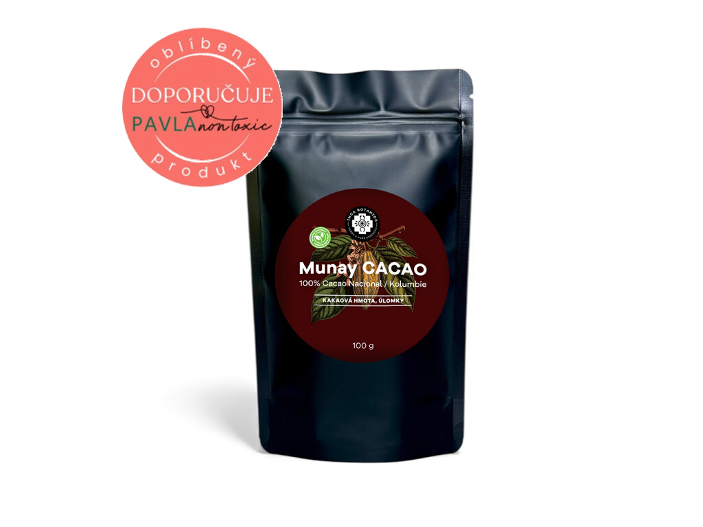 Ceremoniální kakao Munay Cacao představuje čistou 100% kakaovou hmotu vyrobenou z kvalitních bobů odrůdy Cacao Nacional pocházejících z Kolumbie. Tyto kakaové boby jsou pečlivě zpracovány šetrnou metodou, která zachovává jejich přirozené živiny, vysoký obsah kakaového másla i autentickou, jemně hořkou a zároveň harmonickou chuť s květinovými a ovocnými tóny.