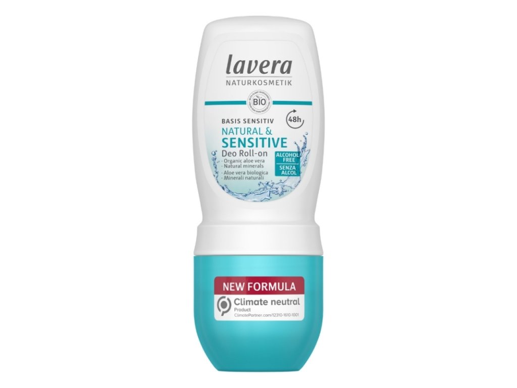 lavera-basis-deodorant-roll-on-50-ml bez obsahu hliníkových solí a alkoholu je vhodný k použití i po holení. Neucpává póry, přírodní složky deodorantu omezují tvorbu tělesného zápachu. Aktivní až 48 hodin.