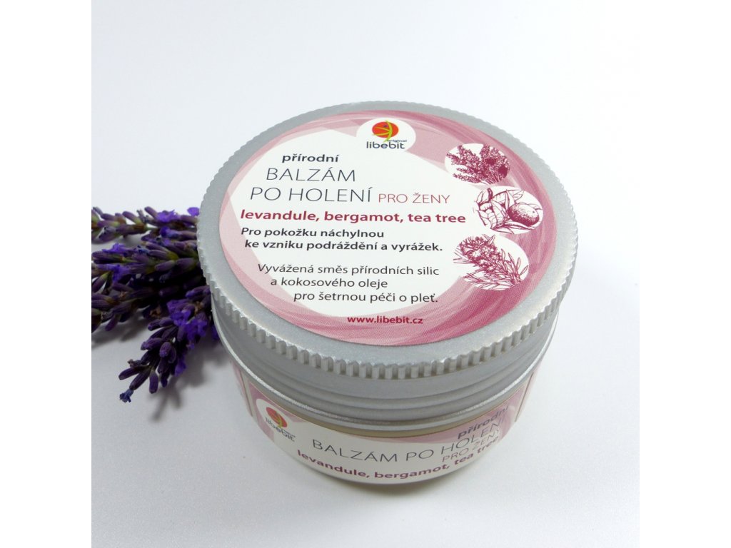 Libebit přírodní BIO balzám po holení PRO ŽENY obsahuje za studena lisovaný BIO kokosový olej. Účinná kombinace přírodních silic --levandule, tea tree oleje a bergamotu-- je vhodná pro ošetření pleti po holení, zabraňuje podráždění a vzniku vyrážek. Kokosový olej společně s vitamínem E působí proti vysušení, ztrátě pružnosti pokožky a intenzivně hydratuje.