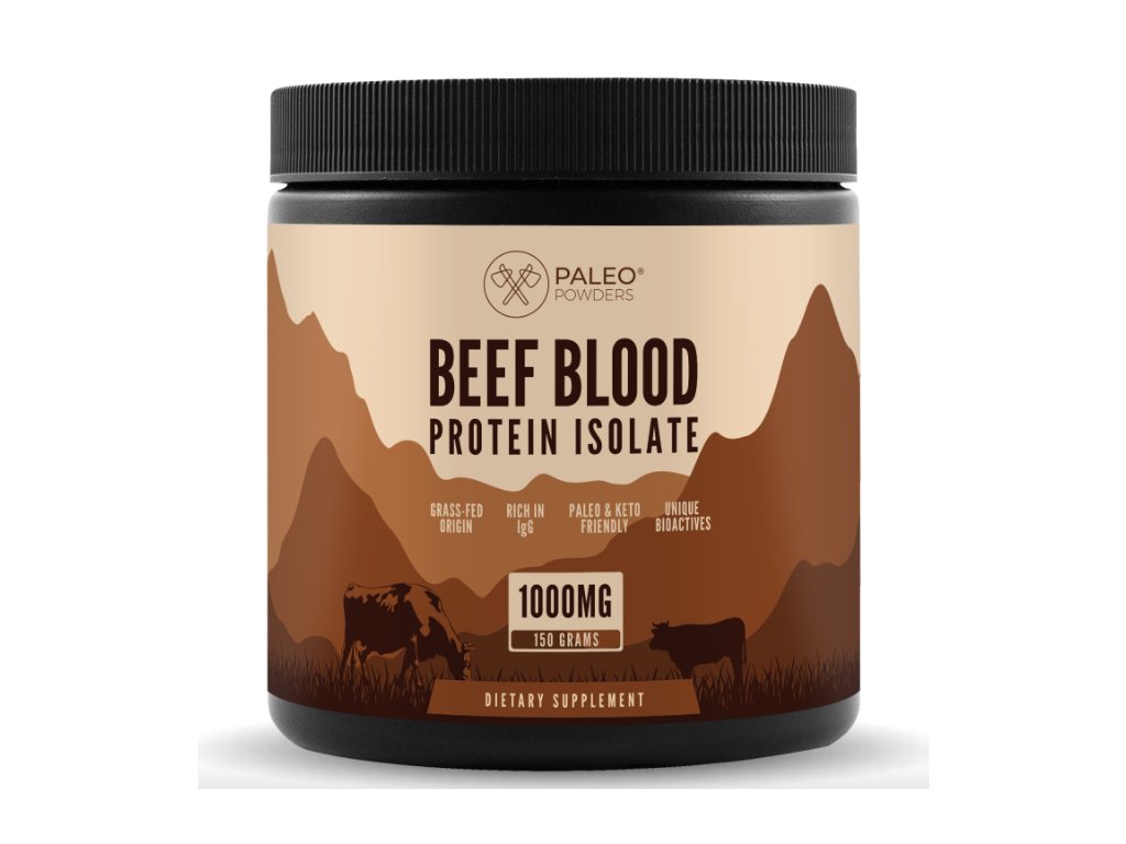 Paleo Powders Beef Blood protein isolate (grass-fed) je cenným zdrojem bioaktivních živin stejně jako hovězí orgány, jiné žlázy, svaly, kosti a kůže. Poskytuje nám všechny stavební kameny, které potřebujeme k podpoře naší vlastní krve. Izolát hovězí krve Paleo Powders pochází z novozélandského dobytka krmeného trávou a obsahuje koncentrovanou směs imunoglobulinů, růstových faktorů a dalších důležitých živinových peptidů. Tyto živiny se přirozeně vyskytují v hovězí krvi a tvoří zcela komplexní složení. Právě pro živiny jako jsou tyto je například kolostrum tisíciletími prověřenou regenerační a imunitní superpotravinou. Podobnými látkami překypuje i tento bílkovinný prášek z hovězí krve.