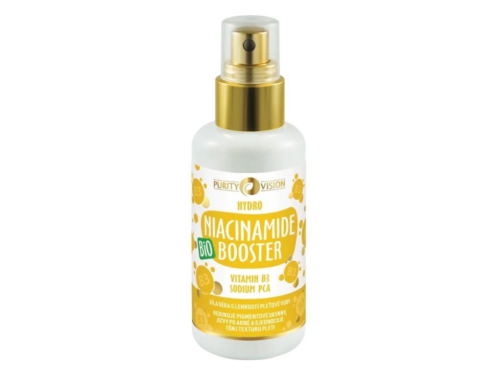 Purity Vision Bio Hydro Niacinamide Booster 100 ml pomáhá najít pleti rovnováhu, sjednotí její tón a podpoří zdravý vzhled? Bio Hydro Niacinamid Booster s vitamínem B3 (niacinamidem) a hydratačním Sodium PCA je tonikum se sílou séra a lehkostí pleťové vody. Dopřejte vaši pleti zklidnění, svěžest a výživu.
