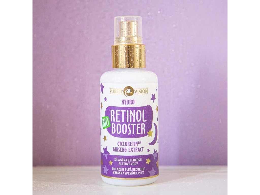 Purity Vision Bio Hydro Retinol Booster 100ml obsahuje extrakt z Pseudostellarie (CycloRetin™), který působí podobně jako retinol, ale bez podráždění. Vyhlazuje texturu, redukuje vrásky a podporuje mladistvý vzhled.