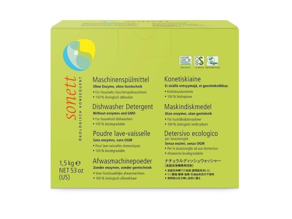 Sonett prášek do myčky je díky jednoduchému, avšak účinnému přírodnímu složení výborným pomocníkem pro každodenní mytí nádobí v myčce. Obsažené látky si účinně poradí s zaschlými zbytky jídla i s mastnotou a zároveň zbytečně nezatěžují přírodu.