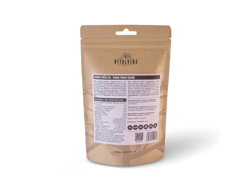 Vitalvibe Baobab BIO, prášek 125g min. tr. 6/26 (pouze 4ks)