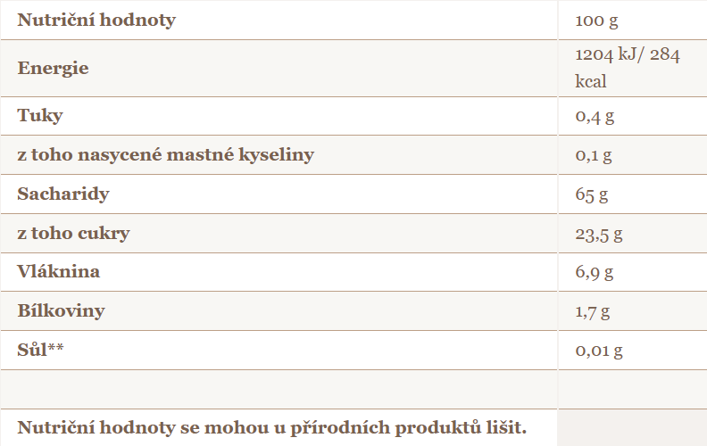 - BIO kvalita, 100% natural, nesířené, bez GMO